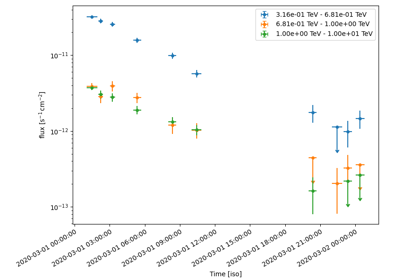 The following set of tutorials are devoted to data analysis, and grouped according to the specific covered use cases in spectral analysis and flux fitting, image and cube analysis modelling and fitting, as well as time-dependent analysis with light-curves.