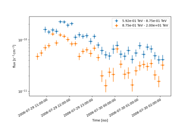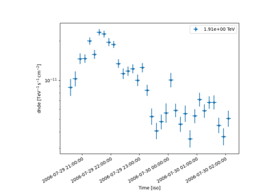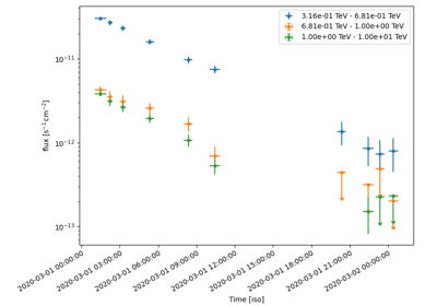 The following set of tutorials are devoted to data analysis, and grouped according to the specific covered use cases in spectral analysis and flux fitting, image and cube analysis modelling and fitting, as well as time-dependent analysis with light-curves.