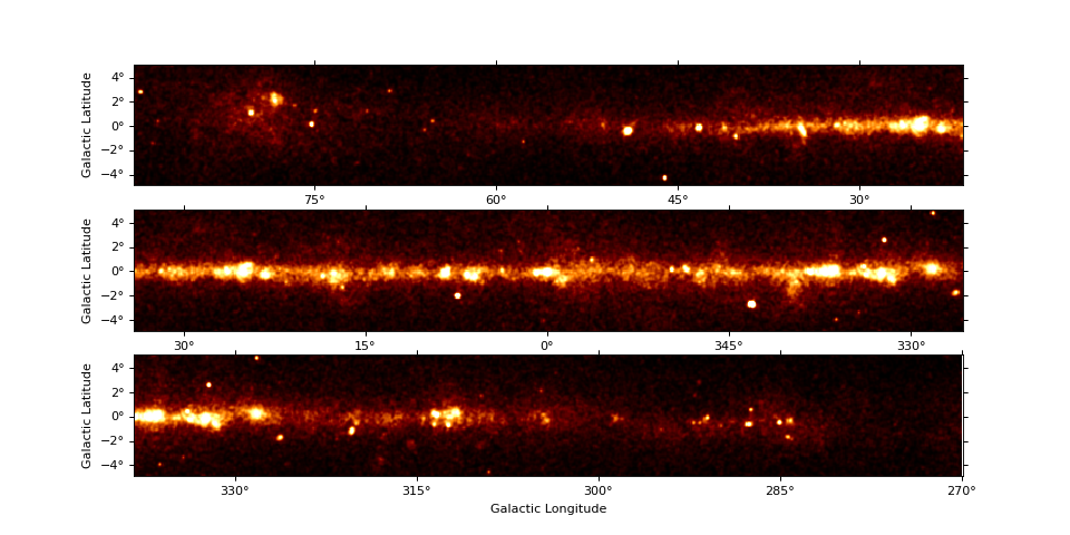 The MapPanelPlotter allows to split e.g. a galactic plane survey image with
